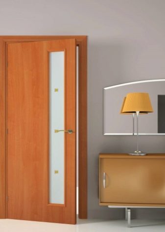 Глухите панелни конструкции са най -подходящи за такива цели, тъй като е много по -трудно да се избере ламинат за модели със стъклени вложки..