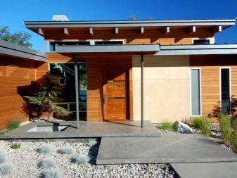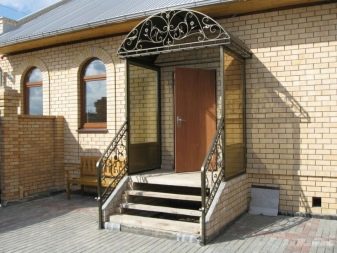 Що се отнася до входната врата, завършена с този материал, тя може да бъде допълнена с навес от поцинкована или метална велпапе.