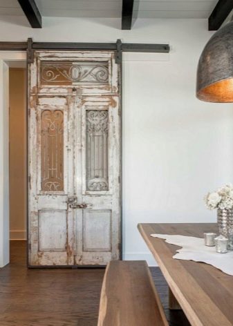 При производството на конструкции на врати в стил таванско помещение се предпочитат трайни материали.