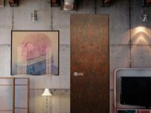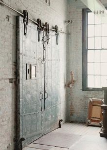 - Оригиналният вариант са врати от стъкло и метал. Стъклените повърхности допълват интериора в стил таванско помещение и визуално разширяват пространството. Дървено крило на вратата с традиционно покритие няма да се впише добре в интериора на промишлено помещение, поради което при производството на дървени изделия специално внимание се отделя на изкуственото стареене.