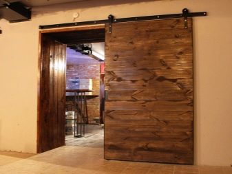 Врата на плевнята е подвижна конструкция на релса. Закрепването с метален валяк ви позволява да преместите дървената дъска по стената. Размерът на такива продукти зависи от размерите на помещението и ширината на вратата..