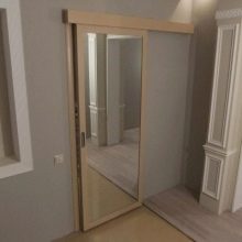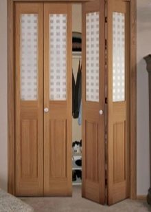 - Огледало или стъкло. Огледална врата визуално увеличава пространството на апартамента и помага да се добави светлина в стаята. Същите свойства притежава врата с дървена рамка и стъклена вложка..