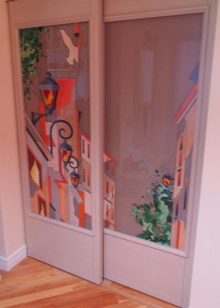 - Чертежи и стикери. Притежавайки творчески наклонности и богато въображение, можете самостоятелно да създадете уникален декор, въоръжен с прости четки и бои. Разнообразни стикери също ще ви помогнат да украсите вратата по оригинален начин..