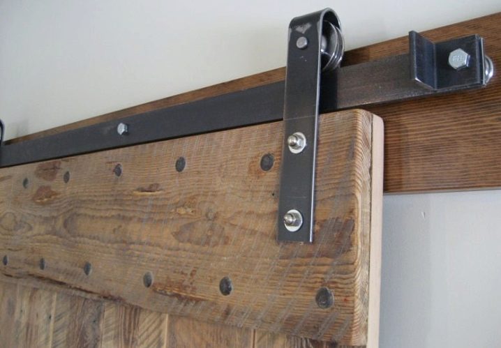 - Фитинги. Вратите на плевнята се преместват с помощта на ролки и каретки и са окачени на метална релса. Всички детайли за закрепване са видими, така че те могат да станат декоративни елементи поради интересен цвят, дизайн и т.н..
