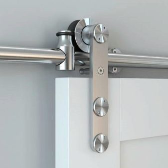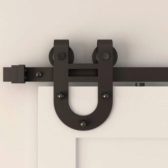 - Фитинги. Вратите на плевнята се преместват с помощта на ролки и каретки и са окачени на метална релса. Всички детайли за закрепване са видими, така че те могат да станат декоративни елементи поради интересен цвят, дизайн и т.н..