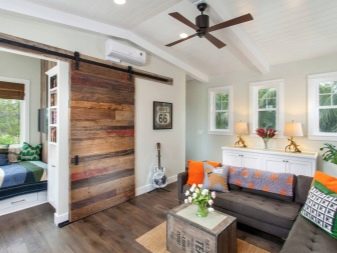 Дълго време вратата на плевнята се смяташе за подходяща само в селски и селски стилове. Въпреки това, с пускането на нови, по -модерни модели, такива дизайни стават актуални в различни стилове. Ето някои стилни примери в различни интериори: