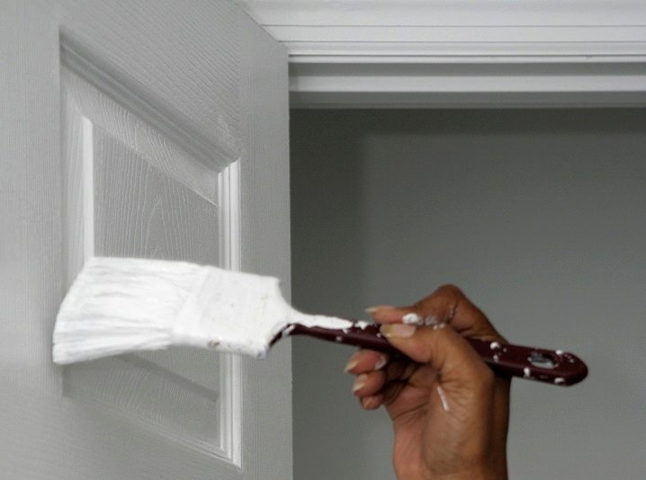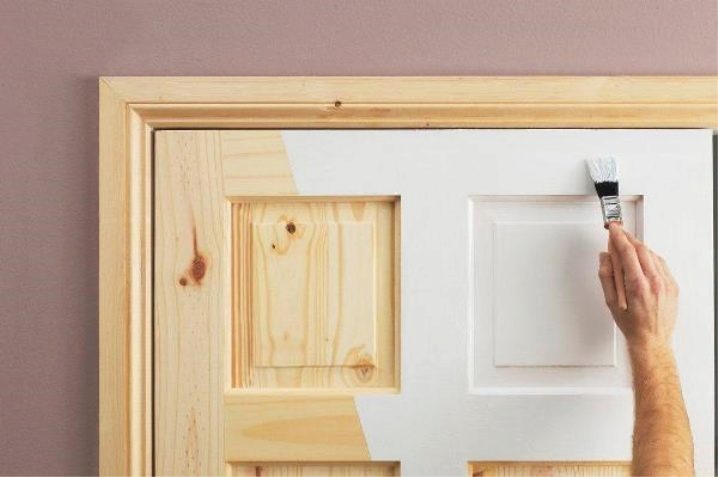 Акрилната боя се предлага за боядисване в един цвят. В случай на възстановяване на дървена врата, боя и лак се избират за работа върху дърво.