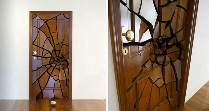 Когато работите с боя, можете да създавате не само обикновени врати, но и цели композиции. Дизайнерите от оригиналната скица ще могат да пресъздадат всяка рисунка, ако е приложена чрез шаблон. Също така е по -добре да поверите идеята за възстановяване под формата на художествена живопис на професионалисти, тъй като не може да се направи без художествени умения. Освен това можете да се захванете с изпъкналите части, тоест корнизите. Те също са боядисани. За оригинален ефект те могат да бъдат декорирани в контрастен тон..