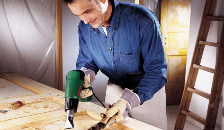 - Преди да започнете работа, трябва внимателно извадете вратата от пантите, фитингите и заключващото устройство. Ако има стъклени вложки, те също трябва да бъдат отстранени, тъй като всички крепежни елементи ще бъдат демонтирани. По -добре е да извършите възстановителни работи на вратата на закрито с достатъчно осветление. Преди да поставите продукта на работното място, е необходимо да защитите подовата настилка, тъй като съществува риск от влошаване, тъй като боята от повредения продукт ще бъде отстранена под потока горещ въздух от сешоара.