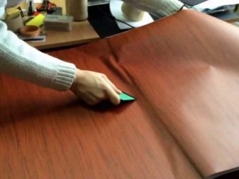 - заслужава си да се помни, че филмът е залепен от ръба, последван от търкаляне на ролката. Въздушните мехурчета се изхвърлят от центъра на залепената зона към ръбовете. Те започват да залепват фурнира от края, така че да няма видими фуги, а първата лента е прикрепена към самото платно в центъра, а останалите са подравнени по нея;