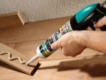 Методът за довършване на ламинат е малко по-сложен, но е подходящ за врати с нестандартни размери. За да надстроите, ще ви трябва ламинат, течни пирони, ламели, ножовка за рязане на материала, тегло и стандартни дреболии: четка за лепило, отвертка за фитинги, евентуално чук или чук.