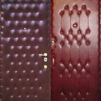 Завършването на вратата с дермантин е опция за вътрешната страна на платното и след това само ако в къщата няма домашни любимци. Огромен плюс е естетическият и практически компонент – шумо и топлоизолация. Ако се изисква покритие отвън, по -добре е да изберете винилова или амилова кожа, те са по -устойчиви на температурни крайности. Изкуствената кожа също ще работи, но е по -пореста и по -малко устойчива на замърсявания..