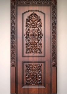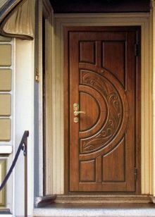 Реставрираната врата изглежда много оригинална с тапицерии, от които са направени надглавни фестони с различни конфигурации. Също така за тези цели можете да използвате издълбани дървени ъгли, създавайки красиви дъски от страната на вратата, обърната към входа. Ако преди всичко от вратата се изисква здравина, най -добре е да използвате лист от дебел гладък метал, залепен с фурнир или MDF панел..