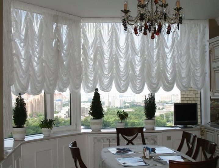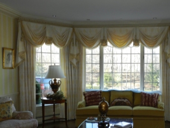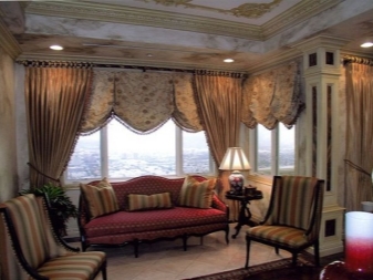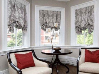- Други възможности. Много често австрийските завеси в много различен стил се използват за украса на прозорците на офиси, просторни коридори и дори бани. Виенските завеси в еркера изглеждат много красиви.