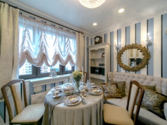 Ако стаята, която сте избрали за поставяне на австрийски завеси, не е много голяма, тогава най -добре е да изберете завеси не за цялата дължина на прозореца, а само за част от него. Това се прави така, че повече светлина да влезе в стаята, но в същото време самите завеси не „изяждат“ общото пространство на стаята, а напротив, визуално я правят по -голяма. Също така, за малки стаи се препоръчва да изберете светли нюанси на тъкани за бъдещи завеси и като контраст с тях можете да използвате декоративни пискюли или ресни.
