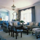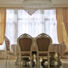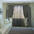 Тази всекидневна е в традиционен стил. Класическите шарки от ламбрекен допълват цялостната композиция на стаята, подчертавайки нейната строгост и елегантност.