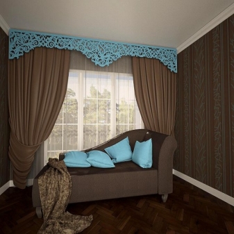 Ажурните ламбрекени се върнаха на мода съвсем наскоро, само преди няколко години, но те бяха известни на дизайнерите от втората половина на 19 век.. Дантелата, издълбана в тази част от интериорната декорация, напомня на бродерията и изглежда много елегантна и ефирна.. Формоването на корниза, което е в рамка от къдрави елементи, може да се впише във всеки интериор, от изискания барок до функционалния модерен.
