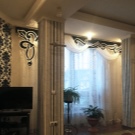 - Избирайки готов ламбрекен, представен от плътна лента, обърнете внимание на модела. Можете да изберете орнамент, чиято стъпка на повторение е от 1 м до 4,5 м. Важно е да закупите такава лента с малък марж, тъй като е наложително да скриете ъглите на корниза.
