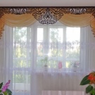 Друга опция за дизайн на прозорци, използваща плътна лента. Изборът на различни модели е огромен. Можете да намерите не само класически орнаменти, но и флорални или романтични такива, например ламбрекени със сърца..
