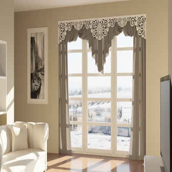 - Друг фактор, който е от голямо значение при избора на подходящ ажурен ламбрекен, е формата на прозореца и формата на помещението като цяло.. Така че тесен прозорец може да бъде визуално увеличен, ако ламбрекенът е широк, а завесите са окачени така, че да покриват малко пространство около прозореца, като в същото време не покриват самата рамка.