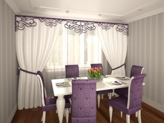 Ажурните ламбрекени не са подходящи за монтаж във всяка стая. Климатичните особености на помещението, функционалното му предназначение са много важни.. Така че къдравите банди не могат да се използват за украса на прозорец в кухня, с изключение на случаите, когато в него са инсталирани най -новите изпускателни, вентилационни, климатични системи. Мазен остатък ще бъде ясно видим върху лъскава тъкан, а самият материал може да набъбне и да се деформира. Цялостният вид на интериора ще бъде напълно разрушен..