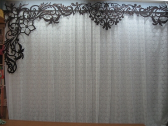 Ажурните ламбрекени се изработват от твърди материали, върху които се нанася и изрязва модел, допълнително украсен с всякакви елементи. Такива ламбрекени се наричат бандо. Най -популярният модел днес е бандо по поръчка с лазерно изрязани ръбове. Те обаче са доста скъпи и много хора избират да купят декоративна лента за корниза. Такъв бар е лента с повтарящ се модел, от която можете да изрежете необходимата дължина, да я фиксирате върху корниза и ажурният ламбрекен е готов. Фигурният ламбрекин може да бъде направен независимо.