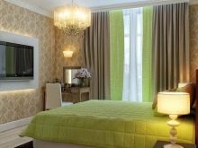 - Бежово зелено гамата ще зарадва окото със спокойствието си. В зависимост от вариациите в зелено, можете да постигнете промяна в стила на интериора от модерен към ретро. Същата комбинация от цветове при шиене на завеси несъмнено ще им придаде своя чар..