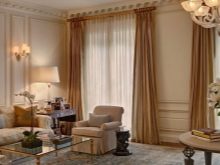 - Така че, ако сте склонни в избора си към бежови завеси, трябва да разберете как трябва да се комбинират с други цветове в интериора, така че външният му вид да стане хармоничен. Да предположим, че сте избрали класиката бежово и кафяво. След това стените, мебелите, подът трябва да бъдат декорирани в светло бежово, бяло и кафяво. Най -популярният вариант е, когато бежовият цвят преобладава като по -светъл цвят, а кафявият (шоколад, венге, орех) изпълнява допълнителна функция. Използвайте този принцип при комбиниране на цветове, когато шиете бежови завеси..