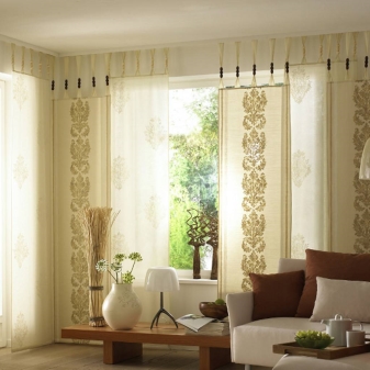Цялостното възприятие на интериора ще зависи от избора на завеси. Има класически (плъзгащи се) и японски. Последните се отличават с факта, че се състоят от абсолютно плоски платна, които се движат хоризонтално като екран или панел. Обикновено се използват за подчертаване на тъкани с необичайни шарки или текстура на завеси..