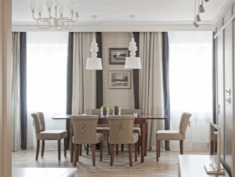 Кухнята може да бъде направена в различни стилове. Без съмнение, за малки помещения, за практически цели, изрязаните завеси са по -подходящи. Ако сте собственик на кухня-хол, комплект от римски завеси и завеси ще бъде подходящ за декориране на вашите прозорци..