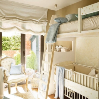 Най -практично е да използвате ролетни щори в детска стая. Те отговарят на всички изисквания, изложени по -горе. Бежовите завеси ще балансират ярките петна във вътрешността на стаята, ще донесат спокойствие и неутралност..