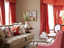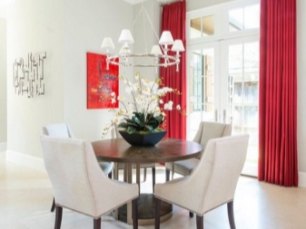 Ако все пак сте решили да украсите прозорците с червен текстил, това изобщо не означава, че в интериора трябва да има много червено. Така че такива завеси не са отделен елемент от целия дизайн, те могат да бъдат балансирани с няколко възглавници на дивана и ваза на масата, за да съответстват на завесите, и това ще бъде достатъчно.