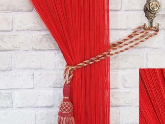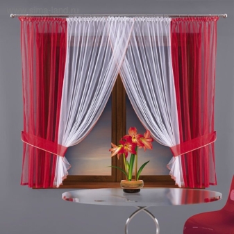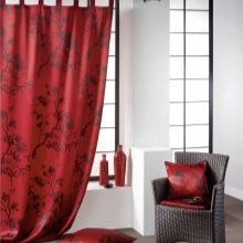 - Кисея или завеса с конец червените нюанси също са от значение. Яркият цвят не изисква допълнителна декорация. Подходящ за модерен стил.