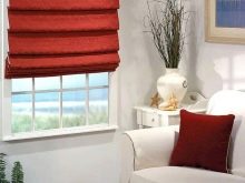 - Римски нюанси в червени нюанси са широко използвани. Те са правоъгълна завеса, сглобена с панделки. Такива завеси ще дадат на прозореца сбитост и простота, въпреки цвета. Изборът на червена карирана цветова схема е чудесен вариант за стил Кантри..