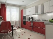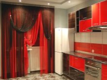 - Кафяв муселин над червен тюл би бил чудесен вариант за модернистична кухня..