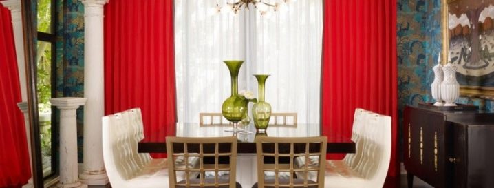 Червените завеси в къщата могат да бъдат с напълно различни текстури и стилове: