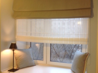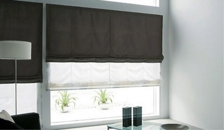 - Двоен римски. Те се състоят от двойка независими платна, които се контролират от различни механизми. В долния слой се използват леки воали, второто платно е плътно, не пропуска ултравиолетова светлина. Чрез преместване на платната можете да промените нивото на осветеност.