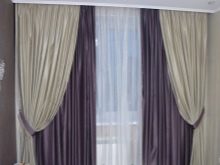 - Двойната завеса изглежда много интересна и необичайна, ако фиксирате едноцветна половина и плат с отпечатък до нея. Този дизайн ще бъде подходящ в стила на Прованс..