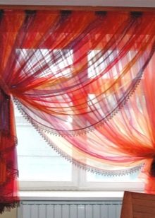 - асиметрични завеси. Версията с различни височини на платна ще изглежда оригинална. Тази техника ще ви позволи да отворите по -добре отвора на прозореца..