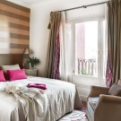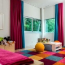 - Детска стая – отлично място за поставяне на двуцветни завеси. Можете да изберете любимите цветове на детето си или да ги съобразите с тона на интериора, особено ако това е тематична стая (за пирати, принцеси, любители на автомобили и т.н.). Твърде наситените цветове не трябва да присъстват в стаята, където бебетата ще почиват. Можете да изберете комбинация от жълто и зелено, но тоновете са заглушени, или розово и сиво, кремаво и кафяво.