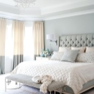 - Спалня – място за отдих, така че завесите трябва да изпълняват не само естетическа функция, но и да са от полза за обитателите на стаята. По -добре е да изберете модели за спалнята с тези нюанси, които успокояват, отпускат и имат благоприятен ефект върху почивката. Освен това те не трябва да пропускат слънчева светлина, което означава, че трябва да обърнете внимание на продуктите от плътни тъкани. Римските двуцветни завеси в интересна комбинация от тонове са перфектни. Отличен вариант е комбинация от близки цветове, като трябва да се избягват закачливите нюанси, които ще бъдат забележими и ще повлияят негативно на психиката.