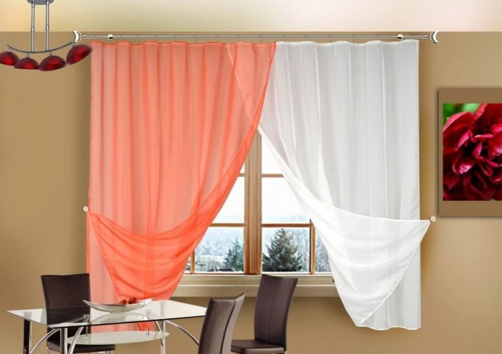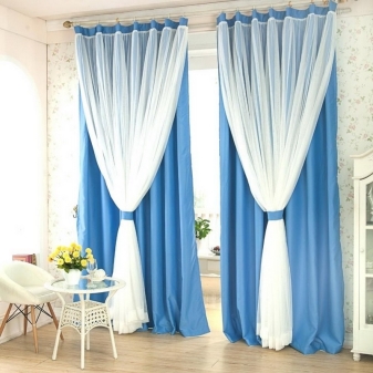 - Ще бъде интересно да се използват материали с различна степен на прозрачност. В резултат на това наслагващите се цветни завеси ще създадат илюзията за трети тон..