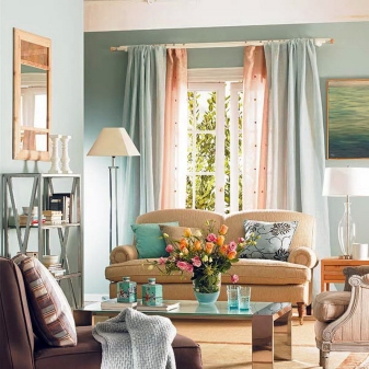 Правилно подбраните завеси в два нюанса ще ви помогнат да моделирате пространството в стаята. За да направите това, е необходимо да вземете предвид някои от техните характеристики: