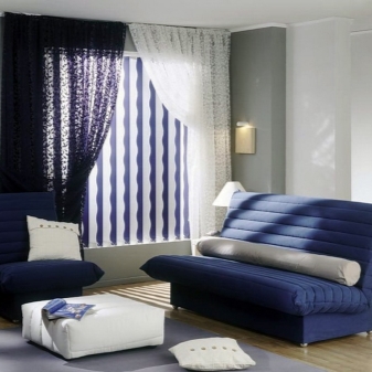 Важно е не само да изберете хармонична комбинация от двуцветни завеси със стила на стаята, но и комбинацията от цветове и материи да е по вкуса на собствениците..
