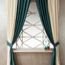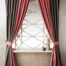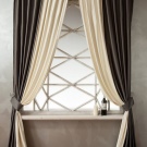 - Тъмните тонове могат да се използват за подчертаване на дъното или ръбовете на завесите..