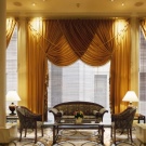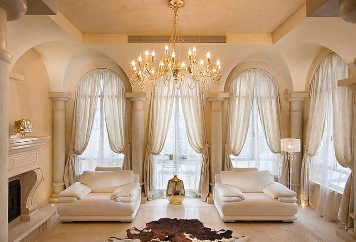 Тези завеси изглеждат най -впечатляващи, когато декорират голям отвор на прозореца. Това им позволява да разкрият напълно своята красота и великолепие. Поради наличието на различни покрития, те са подходящи за всяка стая. Ресторанти и кафенета, театри и музеи, както и всяко жилищно пространство могат да бъдат украсени с тях.