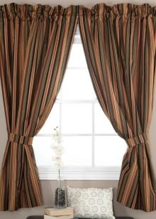 Възможно е и наличието на орнамент върху плата.. Моделът може да бъде зеленчуков, малки клетки или ивици. Богат тъмен цвят може да се разрежда с допълнителни завеси с идентичен, но по -разреден нюанс. Можете да украсите обикновен плат с пискюли, лъкове, гонщици, ресни и други аксесоари..