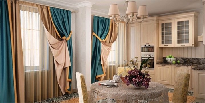 - За кухненски интериор по-добре е да изберете пердета в италиански стил от износоустойчиви тъкани. Те няма да се страхуват от многократно измиване. Цветовете трябва да съответстват на цялостния интериор. По -добре е да намалите дължината и да припокриете платна и да използвате асиметрични пикапи..
