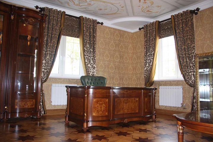 - Към офиса препоръчително е да изберете по -строга версия на завесите. Те също са избрани в съответствие с цветовата палитра на стаята. Офисът трябва да изглежда спретнат, но без излишни неща, така че нищо да не отвлича вниманието от работата.