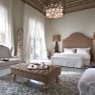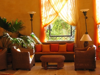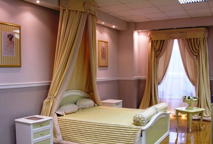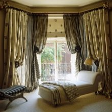 Завесите в центъра се закрепват с помощта на розетка или четка. Декорът на завеси може да се използва изобилно, но опциите с неговото отсъствие също са популярни..